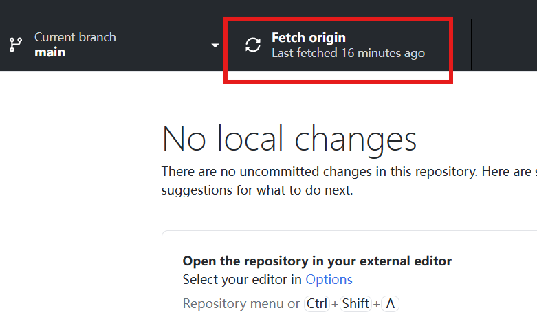 看顶部的 Fetch origin 按钮。点击它。这将更新你本地的项目至目前最新状态。