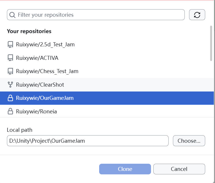3. 克隆 (Clone) 游戏工程到本地
